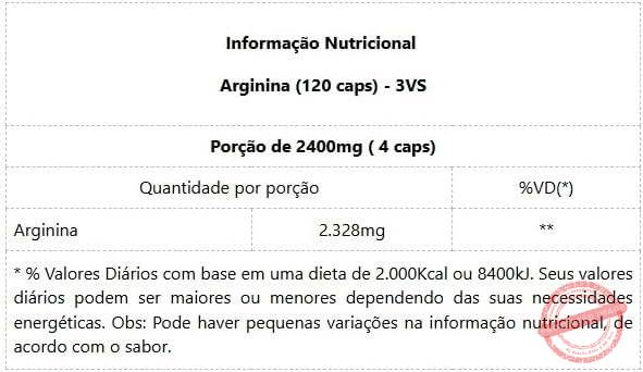 Seja o primeiro a avaliar “3VS Nutrition 100% Arginina Pura 120 caps”