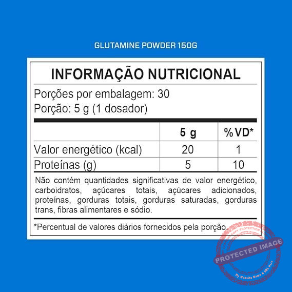 - 5G De Glutamina Por Dose. Matéria-prima importada e 100% pura