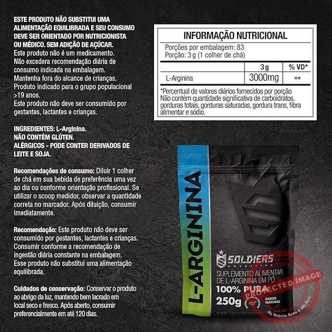 Arginina 250g – 100% Puro Importado – Soldiers Nutrition