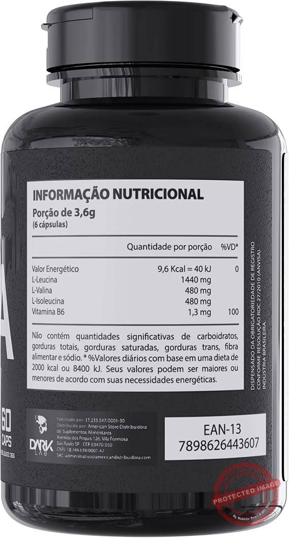 BCAA 3:1:1 Dark Lab, 60 Cápsulas, Aminoácidos, Recuperação Muscular