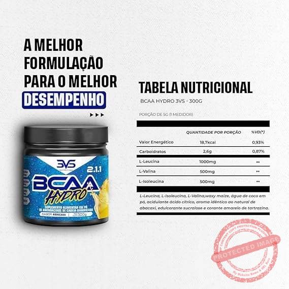 BCAA Hydro 300g 2:1:1 da 3VS Nutrition é um suplementos alimentar com fórmula exclusiva dos BCAA’s
