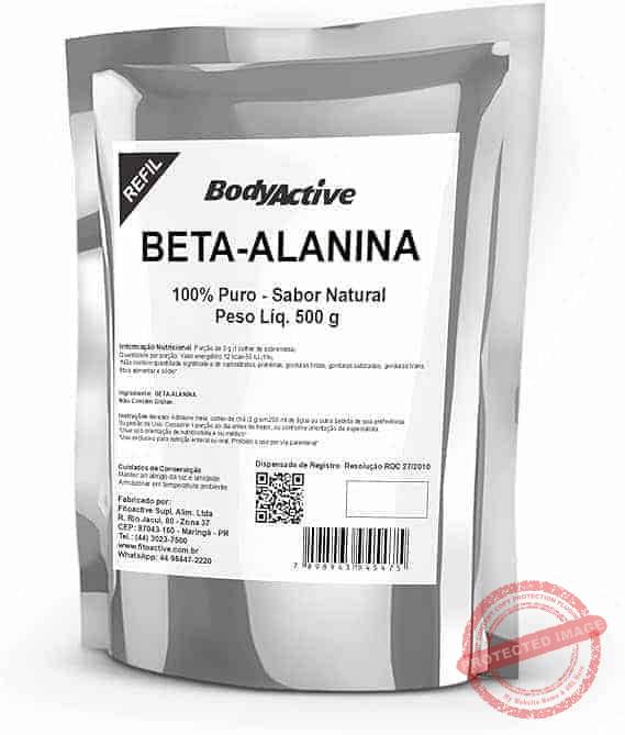 Beta-Alanina 100% Pura 500 g Refil Bodyactive A suplementação de beta-alanina contribui para a performance de atletas em atividades de alta intensidade, elevando os níveis de carnosina e retardando a fadiga muscular. Propriedades: Aumenta a síntese de carnosina muscular. Indicações: Nutrição esportiva Fadiga muscular Aumento da força muscular Performance atlética Recomendação de uso: Para performance atlética usualmente é indicado a dose de 3 g (meia colher de chá) a 6 g (uma colher de chá) por dia ou conforme a indicação de especialista. Para tanto, diluir 3 g da Beta Alanina em 200 ml de água ou outra bebida de sua preferência e tomar antes do treino. Sinonímia: alanine, beta-alanine. Produto indicado para o grupo populacional maior de 19 anos. Este produto não é um medicamento Mantenha fora do alcance de crianças Não exceder a recomendação diária de consumo indicada na embalagem Este produto não deve ser consumido por gestantes, lactantes e crianças CUIDADOS E CONSERVAÇÃO Armazenar em local seco e fresco, protegendo da luz, calor e umidade. Após aberto, consumir dentro de 120 dias. Produtos fora do prazo de validade não devem ser consumidos. Dispensado de Registro – Resolução RDC 27/2010