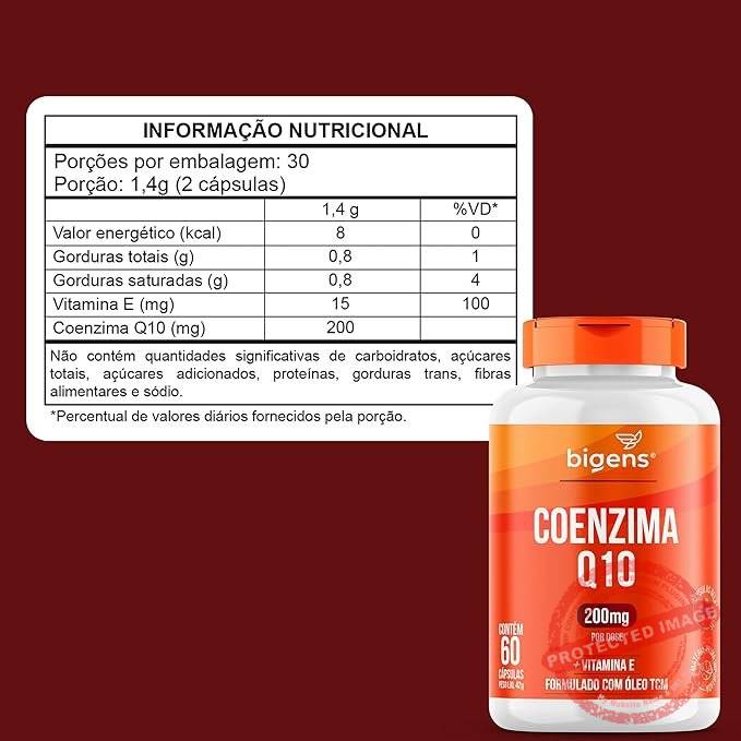 Coenzima Q10 200mg com vitamina E 10mg, alta concentração, 60 cápsulas, Biogens (Unidade)