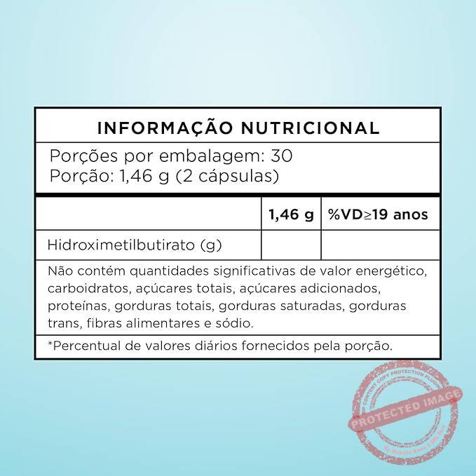 Aditivos Hidroximetilbutirato de Cálcio, etilcelulose, hidroxipropilmetilcelulose, estearato de magnésio, dióxido de silício e celulose microcristalina. NÃO CONTÉM GLÚTEN. Informações sobre alergia Não contém glúten, Não contém laticínios, Não contém leite, Não contém peixe Unidades 1 unidade Porção recomendada 2 cápsulas ao dia Marca Divina Pharma Formato Cápsula Descrição da faixa etária Adulto Número de unidades 60 Fabricante Sundown Dimensões do produto 7 x 7 x 12,5 cm; 70 g ASIN B09VYDJX6D Funciona a bateria ou pilha? Não EAN 7898966313271 - Dimensões do produto : 7 x 7 x 12,5 cm; 70 g