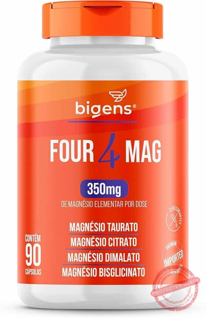 Four Mag, 4 Magnésio (taurato, citrato, dimalato, bisglicinato), 350mg de Magnésio Elementar, 90 Cápsulas, Bigens