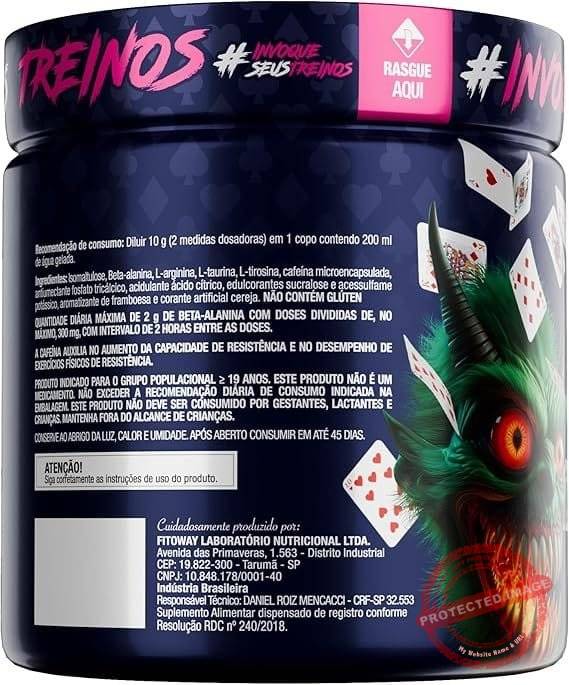 FTW Pré-Treino Diabo Verde em Pó com Cafeína, Aminoácidos Beta‑Alanina e Arginina para Treinos e Atividades Físicas – Pote 300 g (Bala de Framboesa)