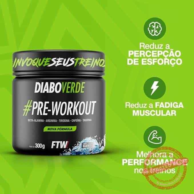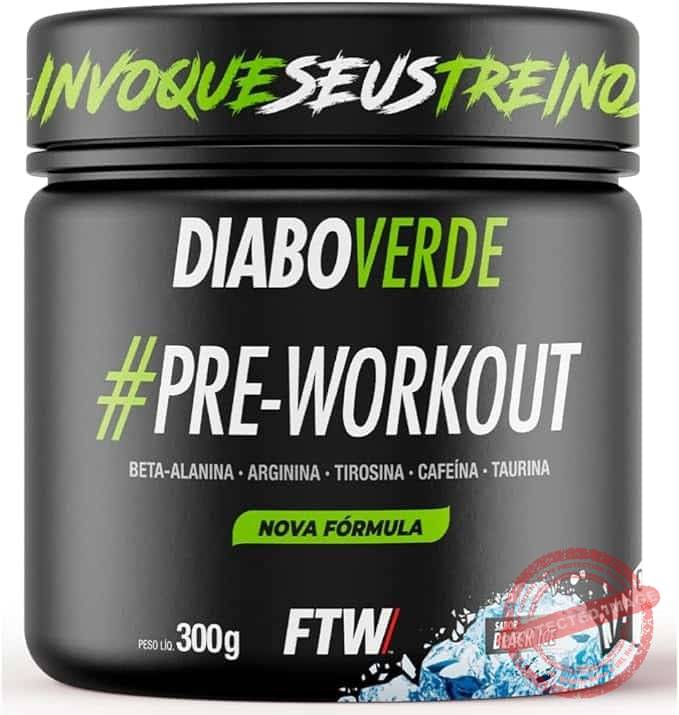 FTW Pré-Treino Diabo Verde em Pó com Cafeína, Aminoácidos Beta‑Alanina e Arginina para Treinos e Atividades Físicas – Pote 300 g (Sabor: Black Ice)