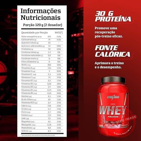 Nome do produto Nutriwhey Pt 907G Morango Informações sobre alergia Não contém bacalhau, Não contém glúten Volume 1092 Mililitros Unidades 907 Gramas Marca Integralmédica Número de unidades 1 Tamanho 900 g (Pacote de 1) Fabricante Integralmedica Número do modelo Nutri Whey Protein Dimensões do produto 14,8 x 14,8 x 25,3 cm; 900 g ASIN B07L5VD5G4 Funciona a bateria ou pilha? Não EAN 7896311709526 - Dimensões do produto : 14,8 x 14,8 x 25,3 cm; 900 g