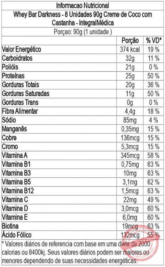 Integralmedica Whey Bar Darkness – 8 Unidades 90G Creme De Coco Com Castanha – Integralmédica