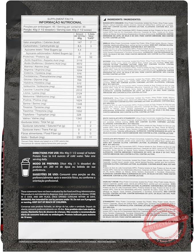 | Informações sobre alergia | A soja pode conter, Lactose, O leite pode conter, O trigo pode conter, Os amendoins podem conter |