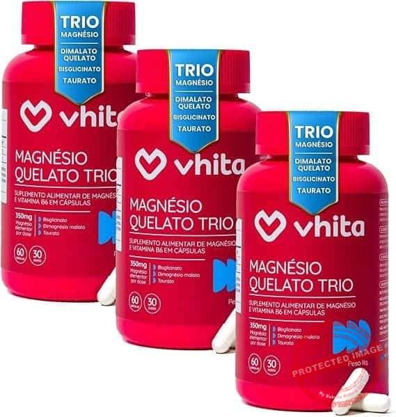 Magnésio Quelato Trio, Dimalato, Bisglicinato e Taurato com Vitamina B6 350mg Vhita 60 Cápsulas (3 unidades)