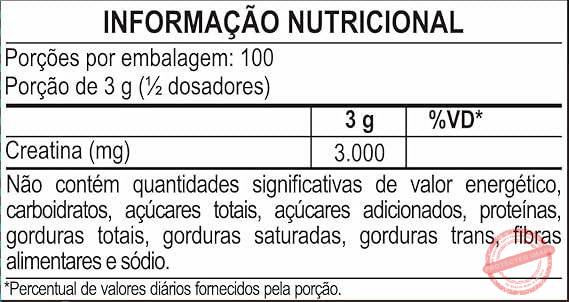 DESCRIÇÃO A Creatina da MasterWay é um suplemento alimentar em pó 100% puro. BENEFÍCIOS A Creatina auxilia no aumento do desempenho físico durante exercícios repetidos de curta duração e alta intensidade. DIFERENCIAIS – 100% Pura; – 3g por porção; – Monohidratada; – Zero glúten. *Produto em conformidade com as normas da ANVISA. APRESENTAÇÃO Suplemento Alimentar de creatina em pó; Peso líquido: 300 g.