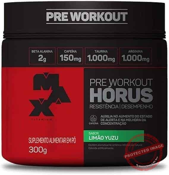 Hórus (300g) – Max Titanium A Evolução do Melhor Pré-Treino Chegou. HÓRUS é um produto para ser consumido no pré treino. Para quem se exercita com intensidade, a fadiga é um dos principais fatores que influenciam o rendimento, por isso desenvolvemos HÓRUS, com uma formulação altamente tecnológica e ingredientes de altíssima qualidade, para você ter um treino com muito mais eficiência.Sinta O Poder De Hórus! Benefícios: > 2g de Beta Alanina, por porção;> 1.000mg de Arginina;> 1.000mg de Taurina;> 150mg de Cafeína;> Diminuição drástica da fadiga muscular;> Aumento elevado da Vasodilatação;> Muito mais força e resistência muscular;> Melhora o desempenho cognitivo; > Acelera o crescimento muscular;> Composição completa em um ÚNICO produto.