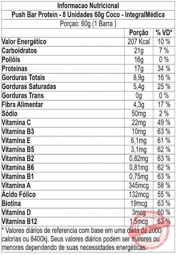 | Nome do produto | Push Bar Protein – 8 Unidades 60G Coco – Integralmédica |