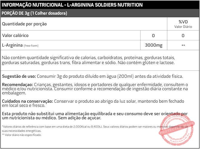 Arginina 500g – 100% Puro Importado – Soldiers Nutrition