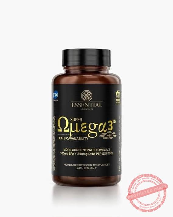 Super Ômega 3 TG – 180 Cápsulas – Essential Nutrition Super Ômega 3 TG da Essential Nutrition é um suplemento em cápsulas contendo óleo de peixe com alta concentração de EPA e DHA na forma triglicerídea (TG), estrutura natural dos ácidos graxos. Produzido com matérias-primas certificadas e purificadas, sua composição é livre de aditivos artificiais e atende aos mais altos padrões de qualidade. Com 180 cápsulas por embalagem, oferece praticidade para uso contínuo, com cápsulas gelatinosas e transparentes.