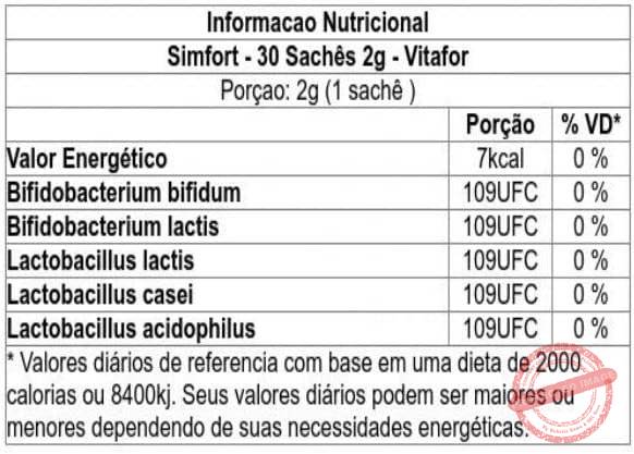 | Nome do produto | SIMFORT 30 SACHÊS DE 2g |