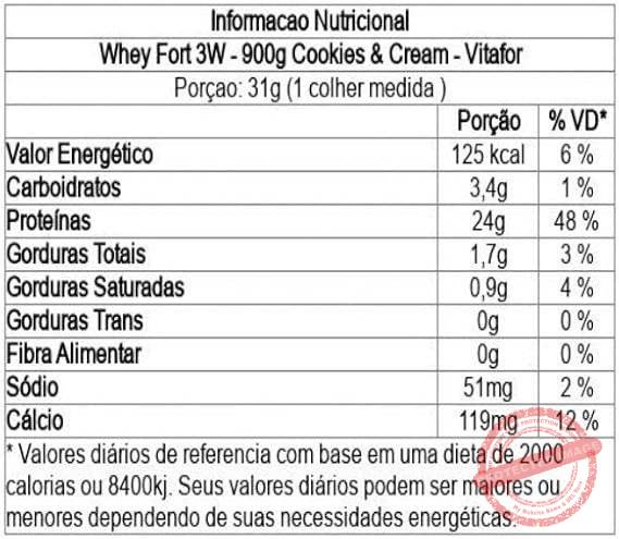 | Nome do produto | Whey Fort 3W – 900g – Cookies n’ Cream, Vitafor |
