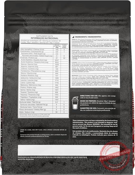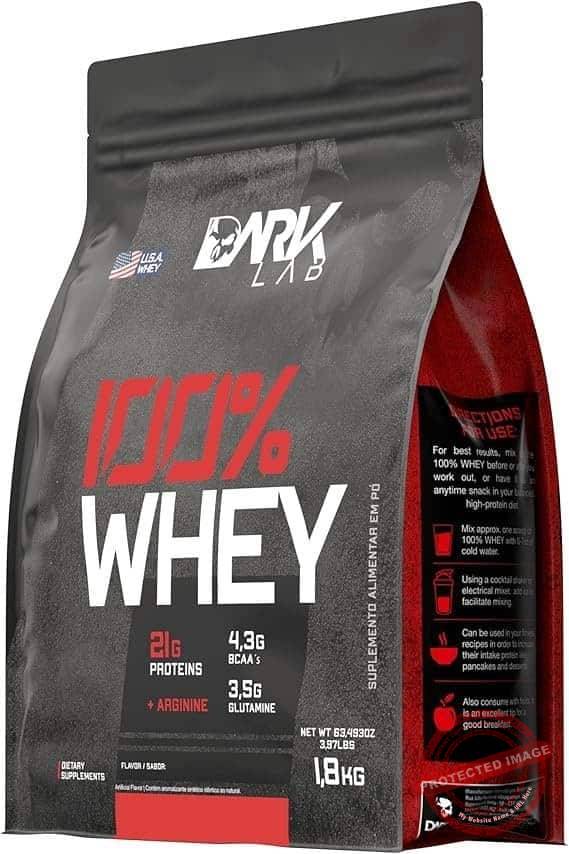 A 100% Whey Protein é o suplemento alimentar perfeito para quem busca um corpo saudável e definido! Tendo como principal componente a Proteína concentrada do soro de leite, são 21g de proteína por dose, 8,6g de aminoácidos essenciais e 4,2g de BCAA. O Whey Protein Concentrado é uma forma de Whey Protein que passa por um processo de filtragem para concentrar suas proteínas e remover carboidratos e gorduras. Ele é amplamente utilizado por atletas e praticantes de atividades físicas para ajudar no ganho de massa muscular, recuperação e fortalecimento do sistema imunológico. Com proteína concentrada de alta qualidade, nossa Whey Protein é facilmente absorvida pelo organismo, fornecendo os nutrientes necessários para a recuperação muscular pós-treino. Além disso, o 100% Whey tem um sabor delicioso e é livre de glúten. Experimente o melhor, entre para o Team Dark Lab.
