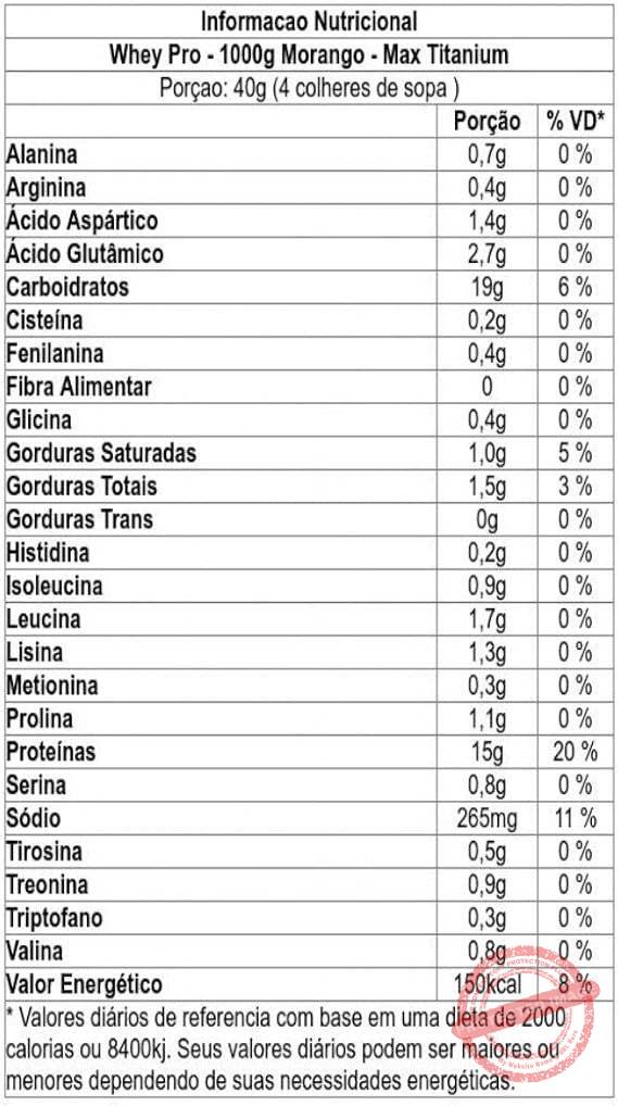 Whey Pro Pote (1kg) – Sabor Morango, Max Titanium
